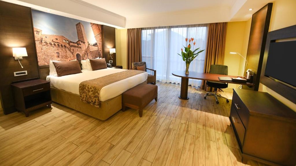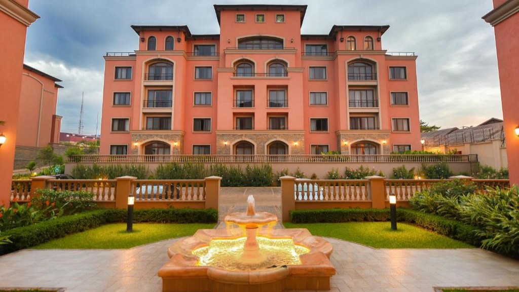 Mestil Hotel & Residences, situated in Kampala, offers guests a luxurious retreat with its outdoor swimming pool, fitness centre, and garden. The hotel provides convenient access to nearby attractions such as Clock Tower Gardens and Independence Monument. Guests can enjoy a comfortable stay in air-conditioned rooms equipped with modern amenities including a desk, kettle, fridge, microwave, flat-screen TV, and private bathroom. The property also features a restaurant serving delicious meals, as well as a terrace, sauna, and hammam for relaxation. Additional services such as a 24-hour front desk, airport transfers, and room service ensure a hassle-free stay. With free WiFi throughout the property, Mestil Hotel & Residences offers both convenience and comfort for travelers visiting Kampala.